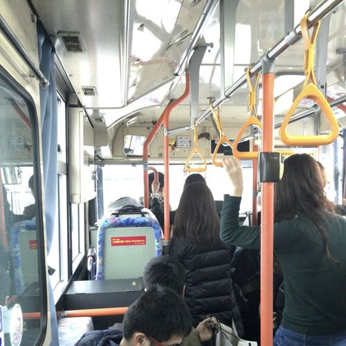 ▲今は2017年2月25日 土曜日の午後5時19分。沖縄・那覇空港LCCターミナルから満員のシャトルバスで国内線ターミナルへ移動中。▲シャトルバスは、出発すると、ほどなく空港フェンスから外に出る。向こうに見える建物が国内線ターミナルらしい。割合近く、歩い…