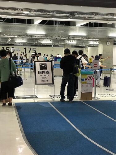 今は、2017年6月25日 日曜日 午後11時21分。ここは、成田空港 第3ターミナル 国内線 制限エリア入り口。中へ入って、手荷物検査を受ける。 荷物検査の後は、表示に従って、白っぽい通路を進む。 関空行き春秋航空IJ651便は、164番ゲートからのメッセージ出発…